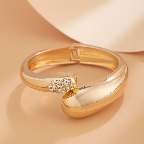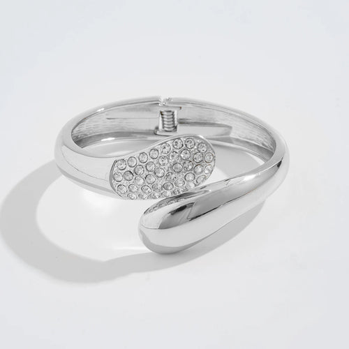 Ingemark Hip Hop Inlaid Rhinestones Water Drop Spring Bangle for Women